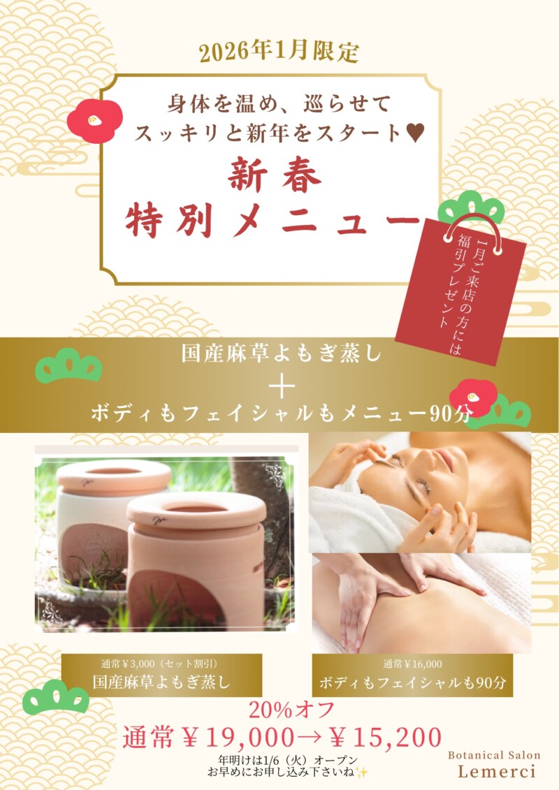 それらを使用してアロマトリートメントは年末年始の溜まった疲れをリセットいたします。