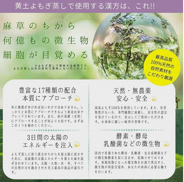 ルメルシェー国産麻草よもぎ蒸し+インナーケアカウンセリングハーブについて