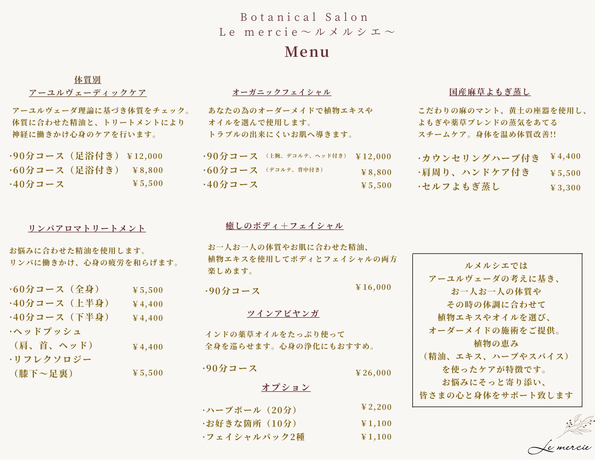 ルメルシェー国産麻草よもぎ蒸し+インナーケアカウンセリングハーブについて